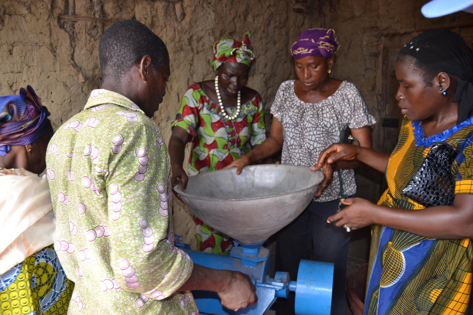 San Pedro women transforming Cassava into attieke through the donated grinder