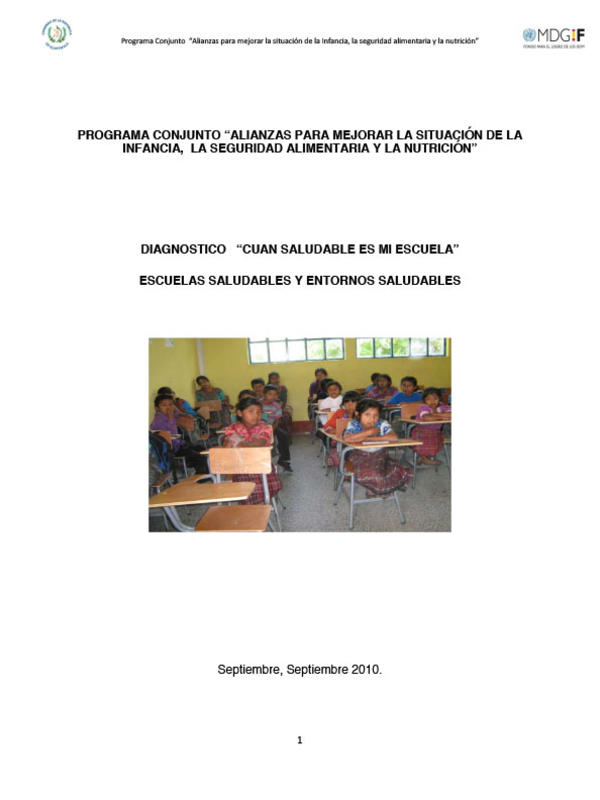 Diagnóstico "Cuán Saludable es Mi Escuela". Escuelas saludables y entornos saludables