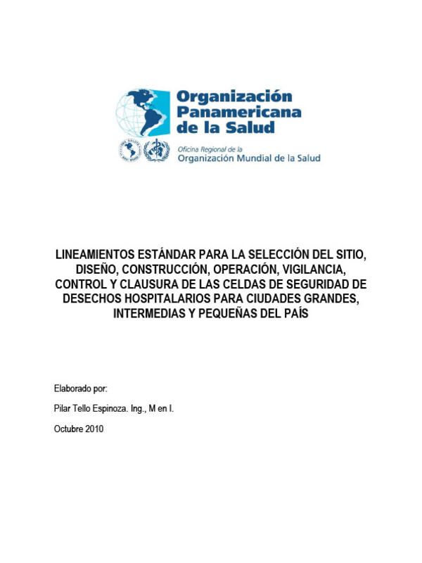 Lineamientos estándar para la selección del sitio, diseño, construcción, operación, vigilancia, control y clausura de las celdas de seguridad de desechos hospitalarios para ciudades grandes, intermedias y pequeñas del país