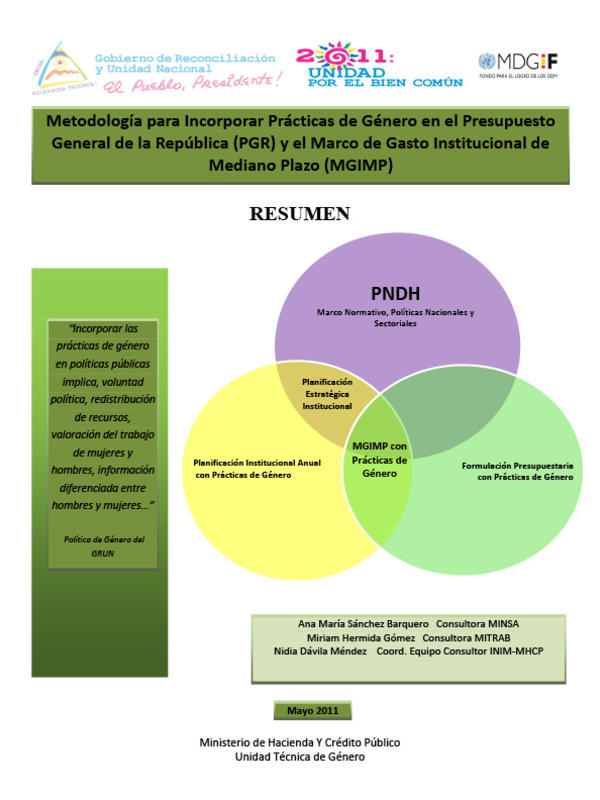 Metodología para incorporar prácticas de género en el Presupuesto General de la República (PGR) y el Marco de Gasto Institucional de Mediano Plazo (MGIMP)