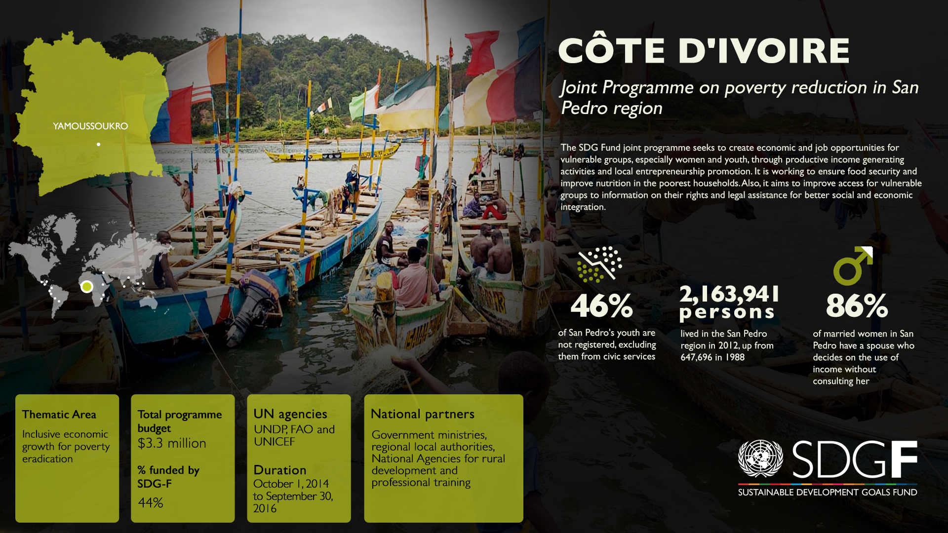 The population in the San Pedro region of Côte d’Ivoire more than tripled in the past 25 years because of migration. Yet the post-electoral crisis of 2010-11 and the decline in public investments severely impacted job-creation and opportunities for the soaring population.