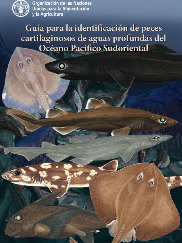 Esta guía ilustrada está diseñada para ayudar en la identificación de una selección de peces cartilaginosos de aguas profundas del Océano Pacífico sudoriental (Área de Pesca 87, FAO), que son de mayor, moderada o menor importancia para las pesquerías. En esta región, la fauna de condrictios de aguas profundas está representada actualmente por 33 especies de tiburones, 26 batoídeos y 9 quimeras. Incluye la revisión completa de 23 tiburones, 6 batoídeos y 4 quimeras seleccionadas por ser las más difíciles de identificar y/o más comúnmente capturadas. Cada especie es descrita, esquematizada mediante una ilustración a color y foto, y se proporcionan, además, caracteres distintivos clave para identificar especies de aspecto similar, que habitan en las mismas áreas, permitiendo la identificación más precisa en campo. Esta guía está destinada a funcionarios del ámbito pesquero que trabajan recolectando datos de captura en el campo, para ayudarlos a identificar a las especies que puedan encontrar.